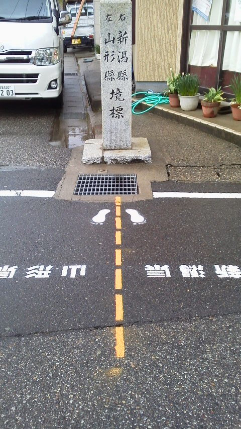 さらにさらに、鼠ヶ関は全国的にも珍しい「市街地の中に引かれている県境」があります。